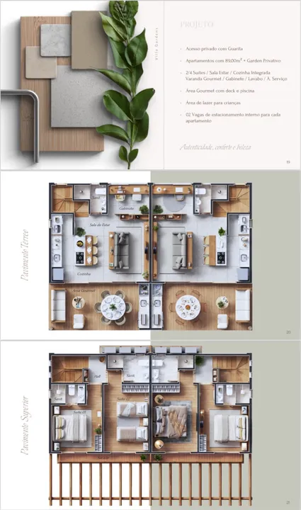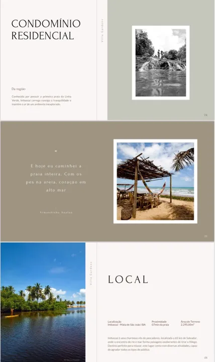 Conheça o Vilage exclusivo em Imbassaí: apartamentos com 2 suítes, garden privativo e uma área construída de 89m², ideal para quem busca conforto, privacidade e lazer em uma das regiões mais encantadoras do litoral baiano. Destaques do imóvel: 2 suítes espaçosas Sala de estar integrada à cozinha Varanda gourmet, gabinete, lavabo e área de serviço Garden privativo e área gourmet com deck e piscina Duas vagas de garagem internas por unidade Acesso totalmente privativo O condomínio conta com infraestrutura completa: Apenas 11 apartamentos, todos com varanda gourmet Piscina adulto com raia, piscina infantil e deck molhado Parque infantil e área de lazer para crianças Estacionamento interno, guarita, área murada, portão eletrônico e segurança 24h Condomínio fechado que aceita pets Áreas técnicas, casa de gás e casa de lixo para maior praticidade Entrega prevista para fevereiro de 2027. Se você deseja morar ou investir em um espaço diferenciado em Imbassaí, esta é a sua chance de conquistar qualidade de vida, lazer e exclusividade! Solicite mais informações e garanta sua unidade.